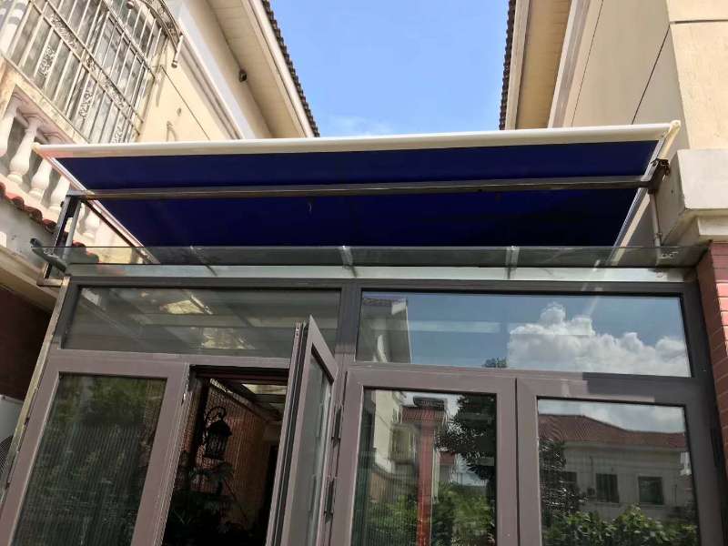 伸縮遮陽雨篷收縮自如,遮陽效果好,可自由調節角度。